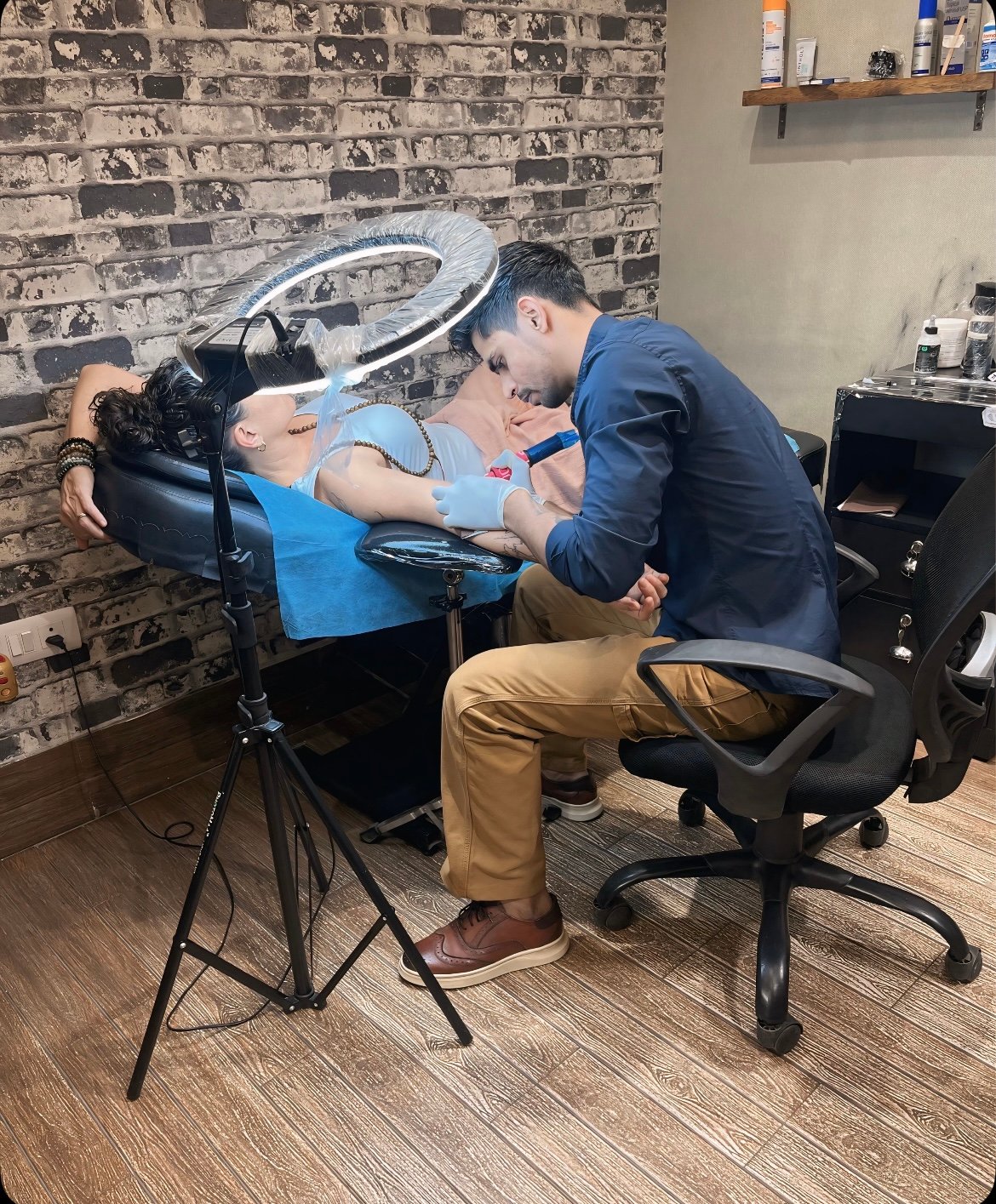 Thnx to Akash for executing our vision for a couple tattoo to perfection, and that too in a laughing mood that put as at ease. There was no "pain" - it's just a slight vibration that we felt. The pristine hygiene at the Wave Silver Tower 1st floor location was great; instruments new and seating very comfortable, full stars.